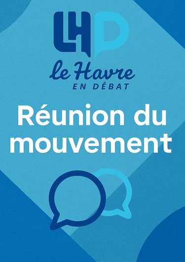 La prochaine réunion du Havre en débat aura lieu le jeudi 13 novembre à 18h, dans les locaux de Gow (1 rue de Bruneval, 76610 Le Havre). Cette rencontre sera l’occasion de : - découvrir le site web et ses outils, - partager les questions ou suggestions autour du programme voté le 31 octobre, - lancer des groupes de suivi thématiques pour prolonger le travail des commissions. Ce temps d’échange est ouvert à toutes et tous, que vous soyez impliqué·e depuis le début ou que vous nous rejoigniez maintenant. Chaque voix compte. Chaque présence peut faire la différence. N’hésitez pas à venir accompagné·e.